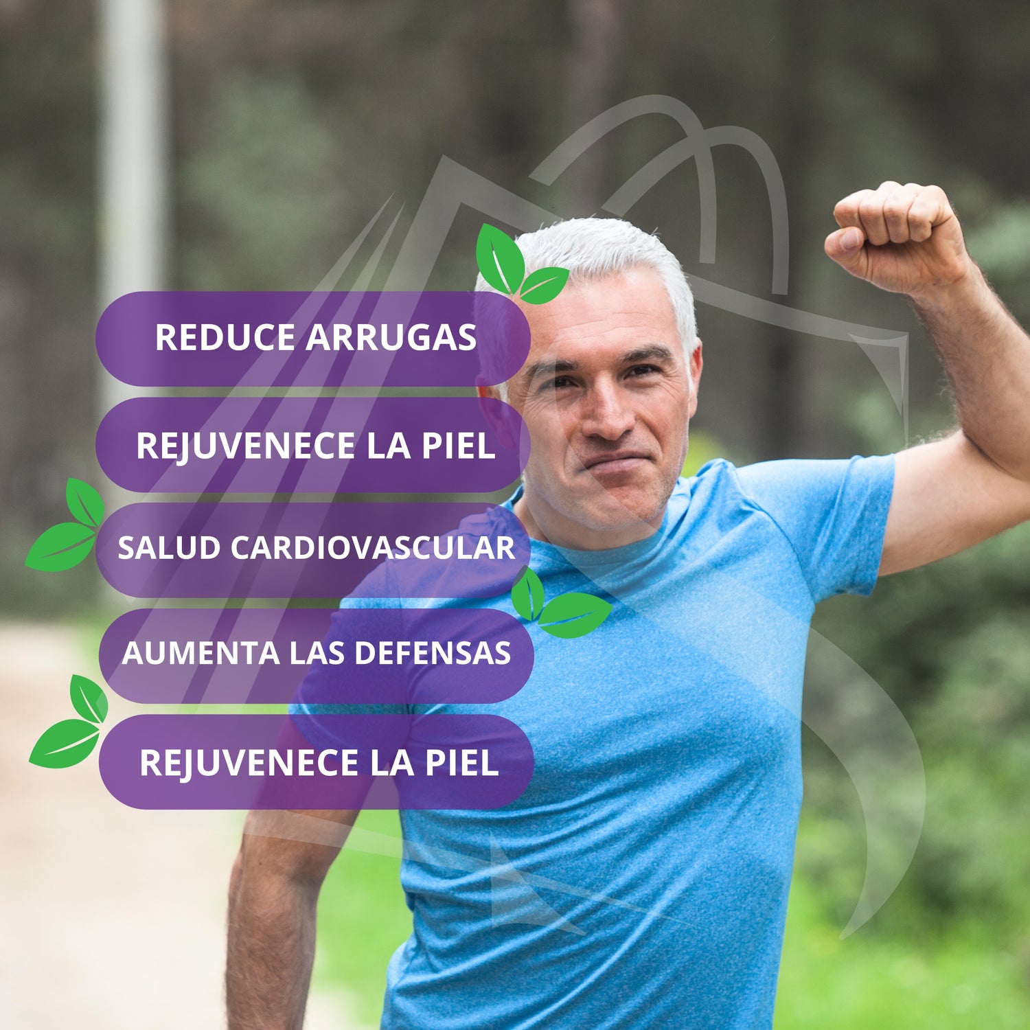 Es un suplemento natural que ayuda a mantener la salud celular, cardiovascular y a combatir el envejecimiento prematuro.